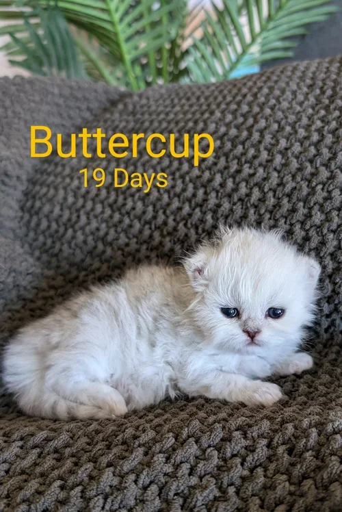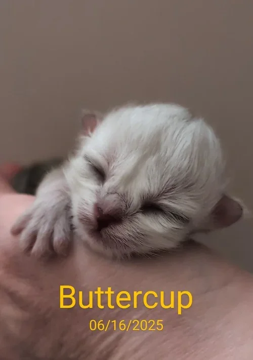 Looking for a furry friend to steal your heart? Meet Buttercup, an adorable Silver Chinchilla kitten born on June 16, 2025, ready to bring love and joy to her forever home!